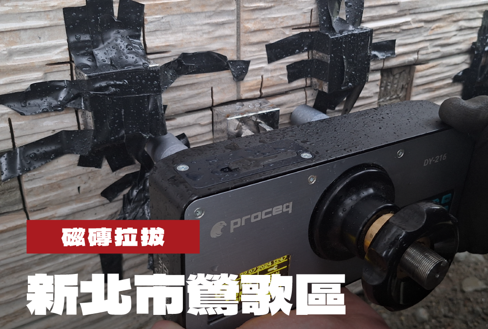 「磁磚拉拔試驗主要用於檢測磁磚黏著劑與現場施工品質是否符合安全標準。這項測試非常重要,因為它能夠評估磁磚黏貼的狀況,確保施工品質,並有效降低外牆磁磚掉落的風險。此次鶯歌的案子雖然只是一般私人住宅的新建工程,但仍需進行磁磚拉拔/拉脱檢測。我們採用了較新型的『全自動拉拔/拉脱試驗儀』,並搭配切割完善的試體,成功完成了此次試驗。」